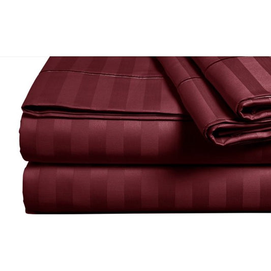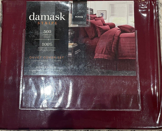 Damask Stripe King Duvet Cover Set Reversible - Burgundy