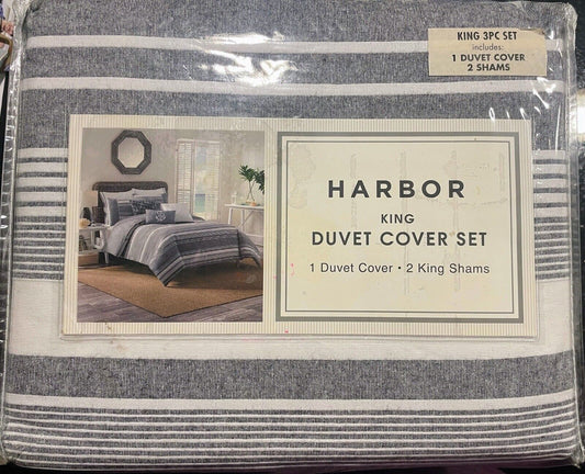 Harbor King 3-Piece Duvet Cover Set - Grey