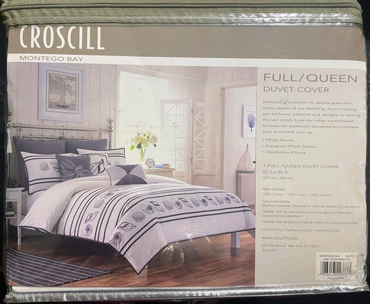 Croscill Montego Bay Full/Queen Embroidered Sea Shells - White/Blue