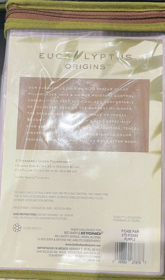 Eucalyptus Origins Set of 2 Standard/Queen Pillowcases - Purple