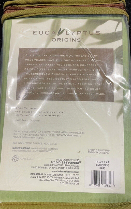 Eucalyptus Origins Set of 2 King Pillowcases - Sage