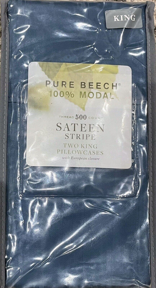Pure Beech Sateen Stripe King Pillowcases - Set of 2 - Blue
