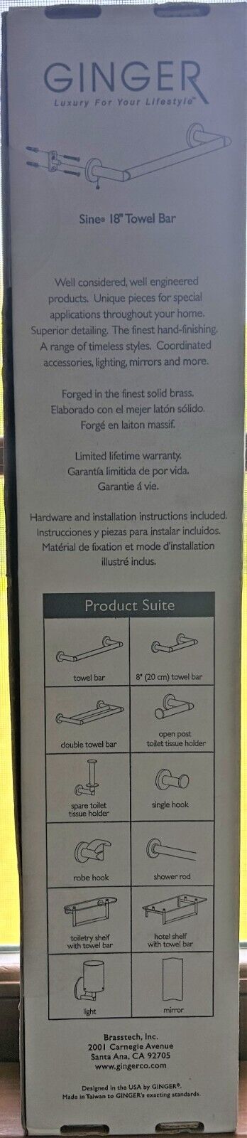 Ginger Sine Collection 18” Polished Chrome Single Towel Bar